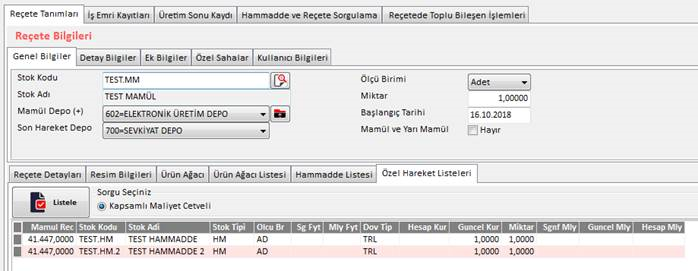 üretim sonu kayıtlarında bağlı bileşen olarak tanımlanmış yarı mamullerin de
